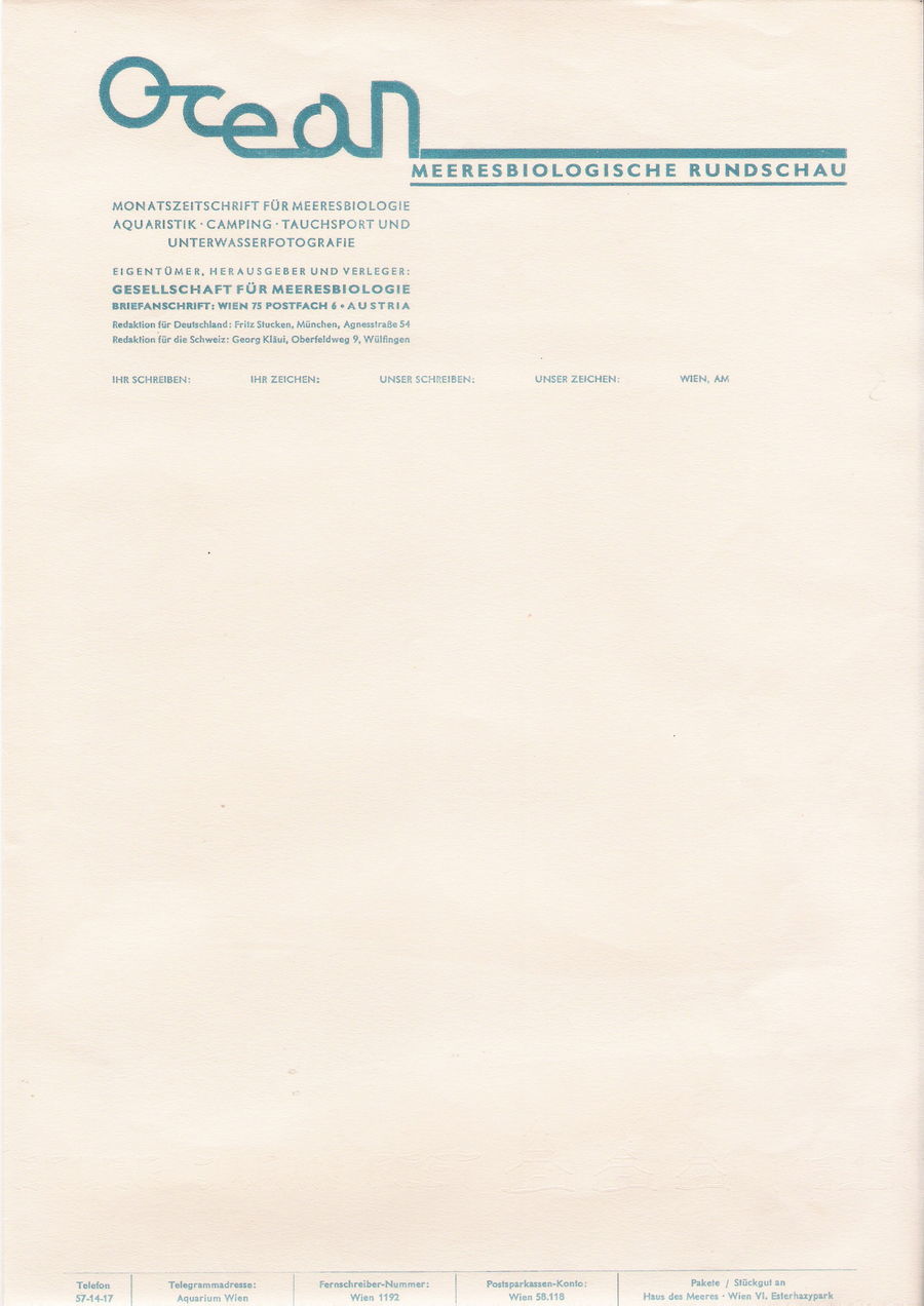 Das Gemeinschaftsorgan "Meeresbiologische Rundschau" sollte von Wien aus eine Fortsetzung finden. Man beschloss, eine mehr als 30 Seiten umfassende, bunte Monatszeitschrift mit Beiträgen aus allen drei Ländern ab Jänner 1960 zu starten.