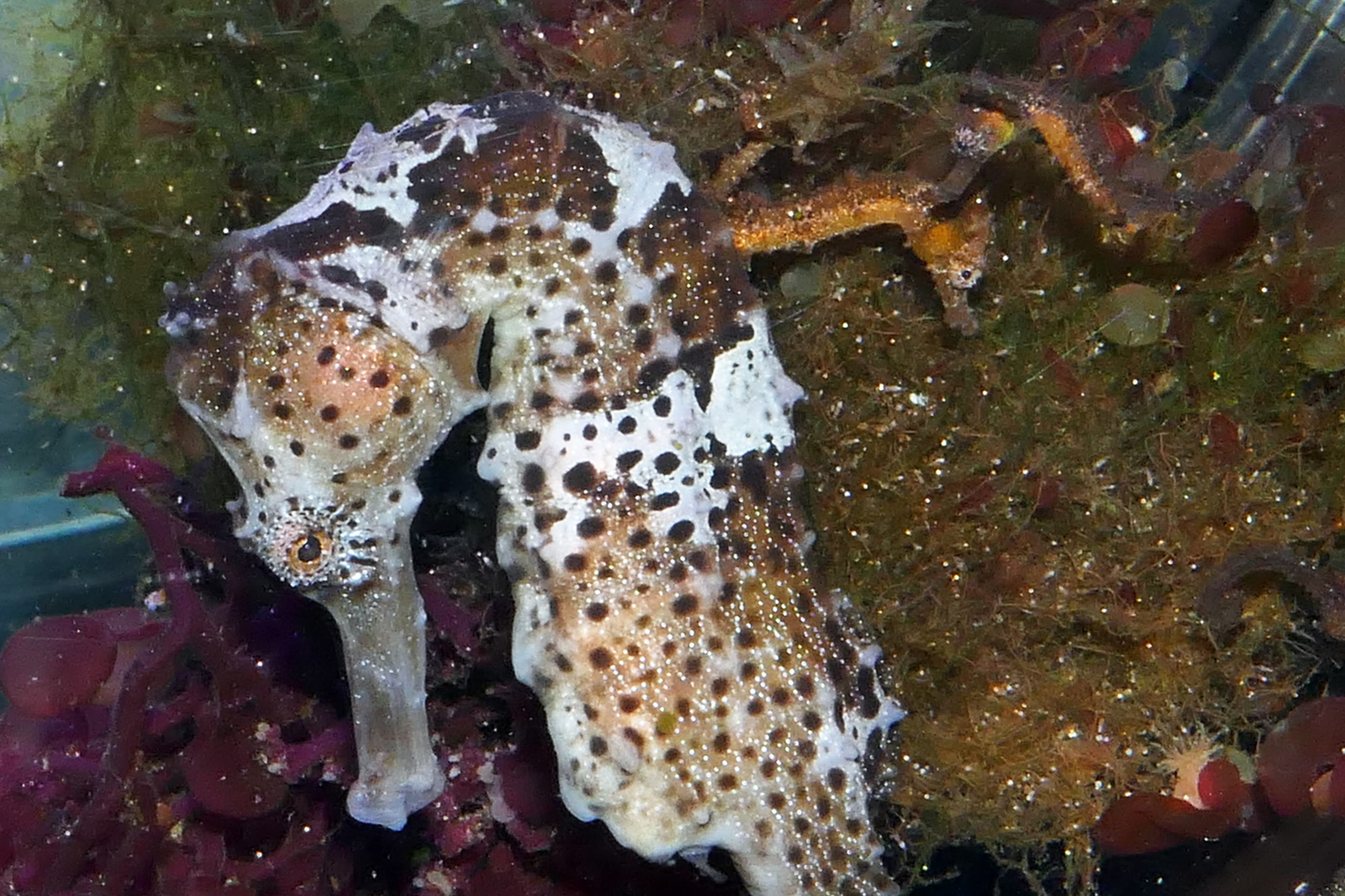 Ein Grund mehr, nach 15 Jahren erfolgreicher Nachzucht und Aufzucht von ca. 1000 Seepferdchen nicht nur am Muttertag Seepferdchenmamas sondern auch Papas zu feiern. In unserem Seepferdchen-Schauaquarium im 4. Stock sind Erwachsene und auch einige Seepferdchen-Babys zu bewundern.