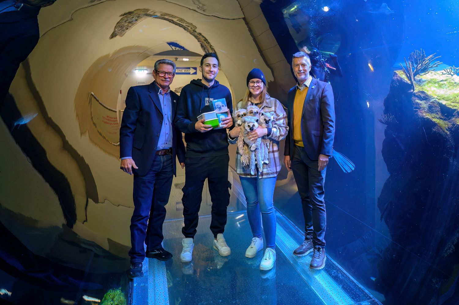 „15 Millionen Haus des Meeres Besucher in 67 Jahren, darauf sind wir sehr stolz!“, verkündete Zoodirektor Dr. Michael Mitic. Am Mittwoch, den 13.11.2024, war es so weit: Ein junges Pärchen aus Salzburg waren die Glücklichen. Selbstverständlich waren die Jubiläumsgäste eingeladen und mussten keinen Eintritt zahlen. Außerdem bekamen sie zusätzlich Gutscheine für das Dachrestaurant 360°Ocean Sky, eine Spezialführung und durften in unserem Shop 30 Sekunden lang speedshoppen.