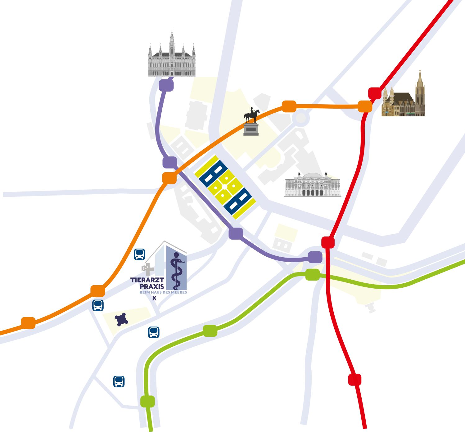 – U-Bahn-Linie U3 bis Station Neubaugasse (wenige Gehminuten zur Praxis)